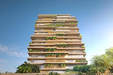 Detalhe da fachada da cobertura triplex do One WTZ