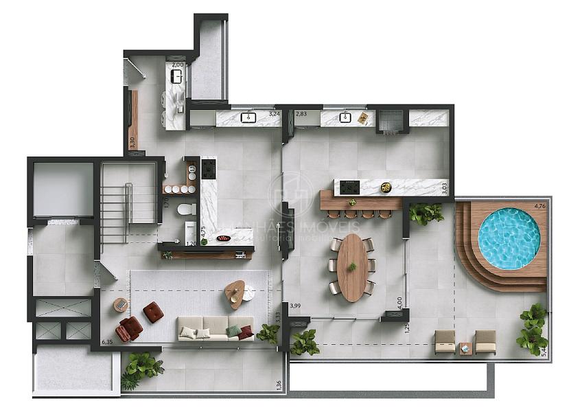 Planta humanizada do Apartamento Duplex (pav. inferior)