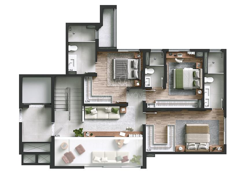 Planta humanizada do Apartamento Duplex (pav. superior)
