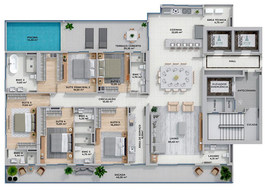 Apartamento Garden no Edifício Grand Place Tower em Balneário Camboriú - FG Empreendimentos