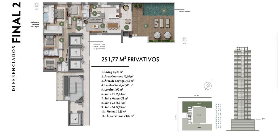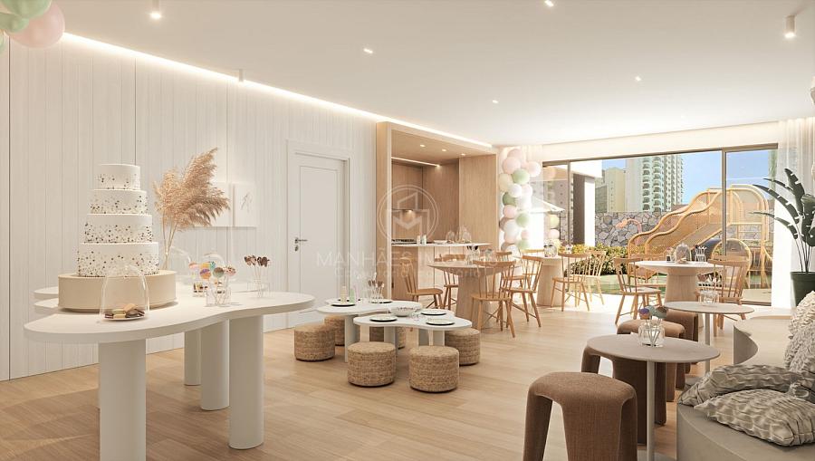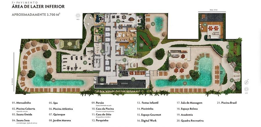 Ambientes integrados que aproximam as relações, abundância de luz natural, ventilação priorizando o bem-estar e uma ampla área de lazer com os mais diversos ambientes. O paisagismo é outro detalhe que chama atenção, trazendo a sensação de se estar em meio ao verde, mesmo vivendo bem no centro de uma das cidades mais agitadas do litoral catarinense, onde tudo acontece.