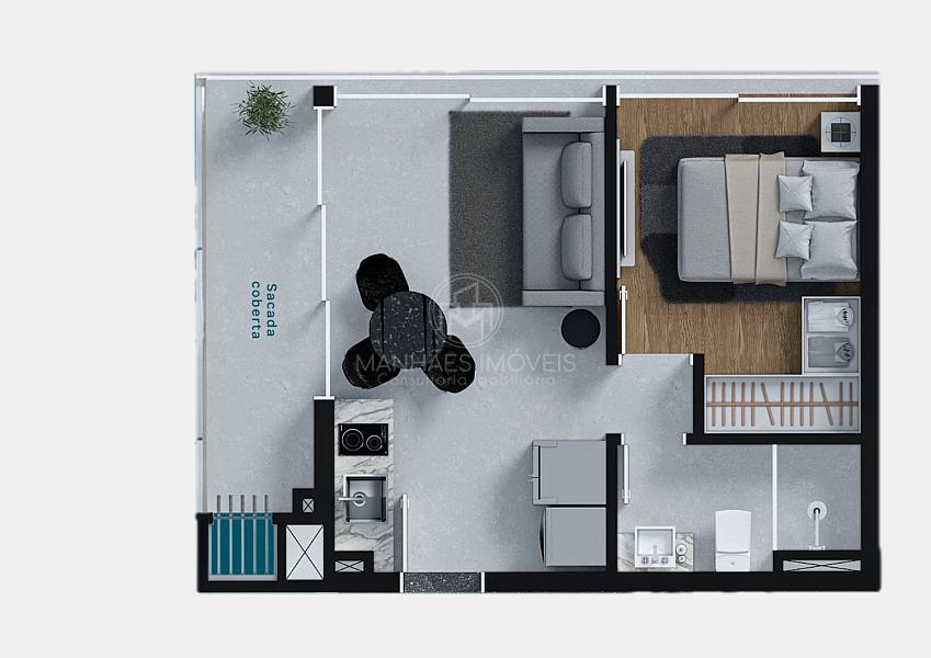 Planta humanizada do Apartamento de 1 dormitório | 37m² priv.