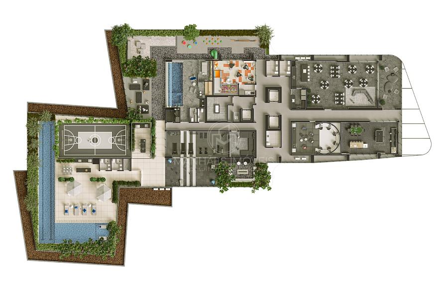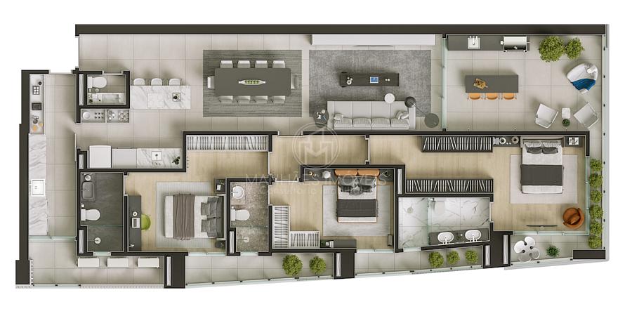 Planta humanizada do Apartamento tipo A - Final 01 | 167m² priv.