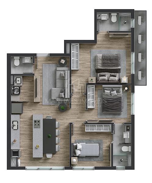 Planta do Apartamento de 85m²