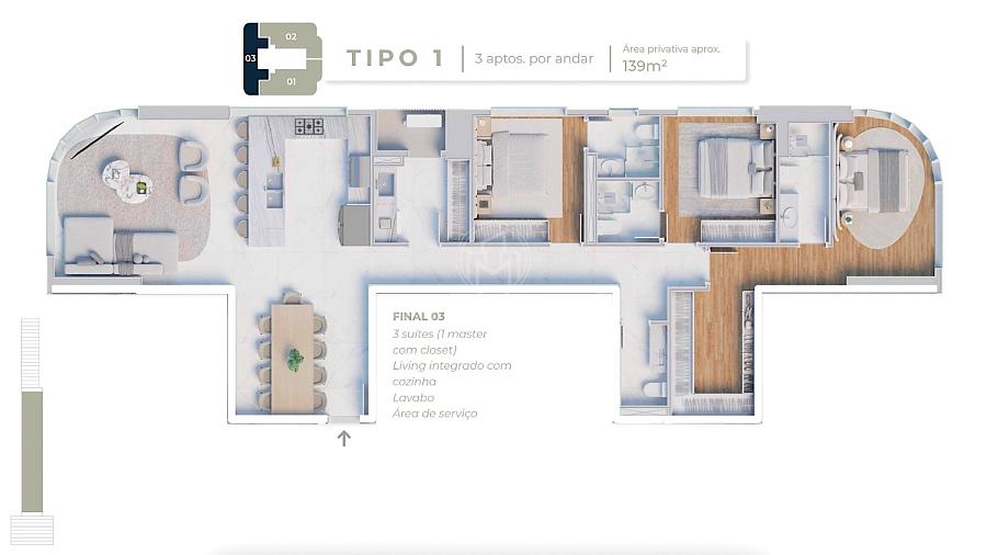 3 dormitórios (3 suítes)