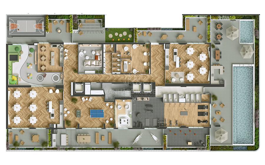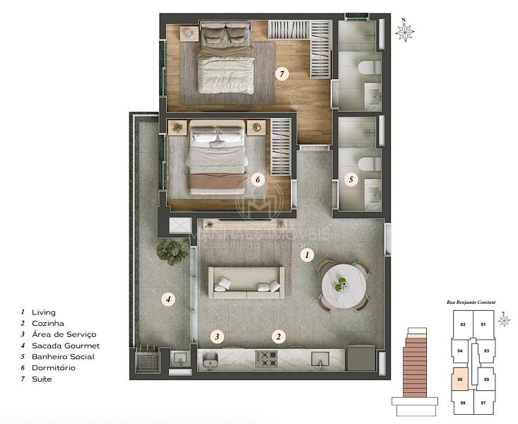 Planta humanizada do Apartamento Tipo - Final 6 | 65,59m² priv.