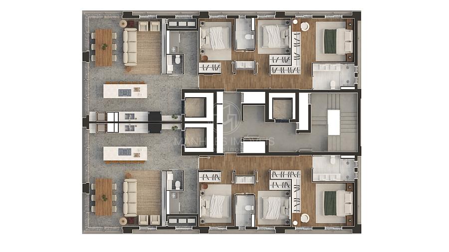 Plantas de 128m² | 2 apartamentos por andar