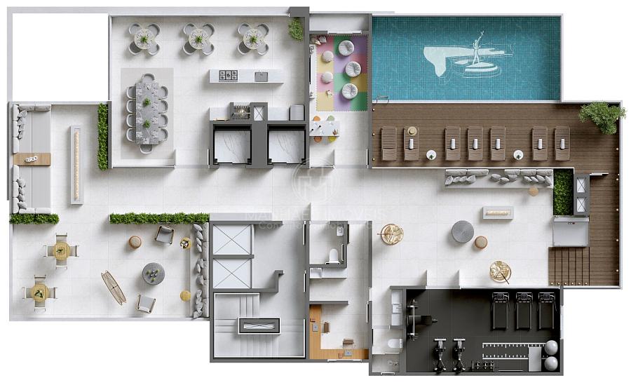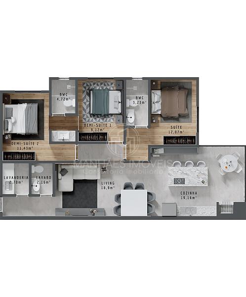 Planta humanizada do Apartamento Tipo 02 - 100m² priv.