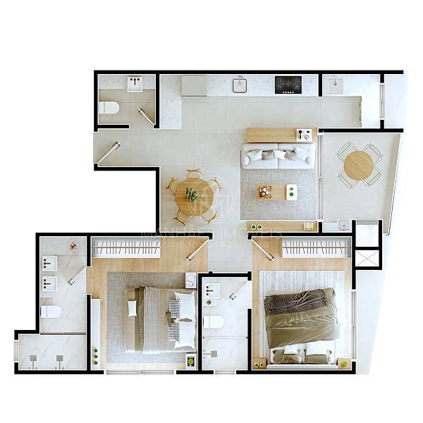 2 dormitórios (2 suítes)