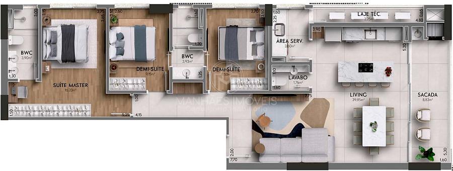 Planta Apartamento 3 Dormitórios 116m² (5º ao 13º - Final 01)