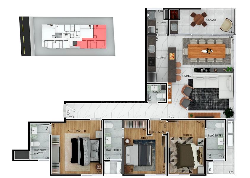 3 dormitórios (3 suítes)