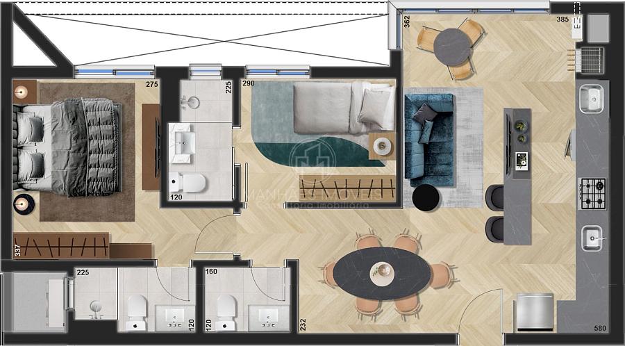 Planta Apartamento: 64m² com 2 Suítes + Lavabo