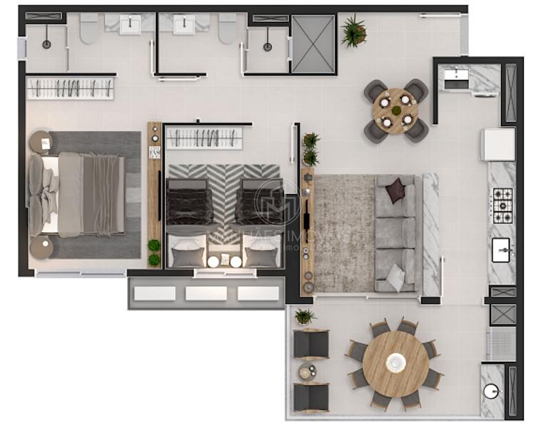 Planta humanizada do Apartamento Tipo | Finais 05 e 06 - 83m² priv.