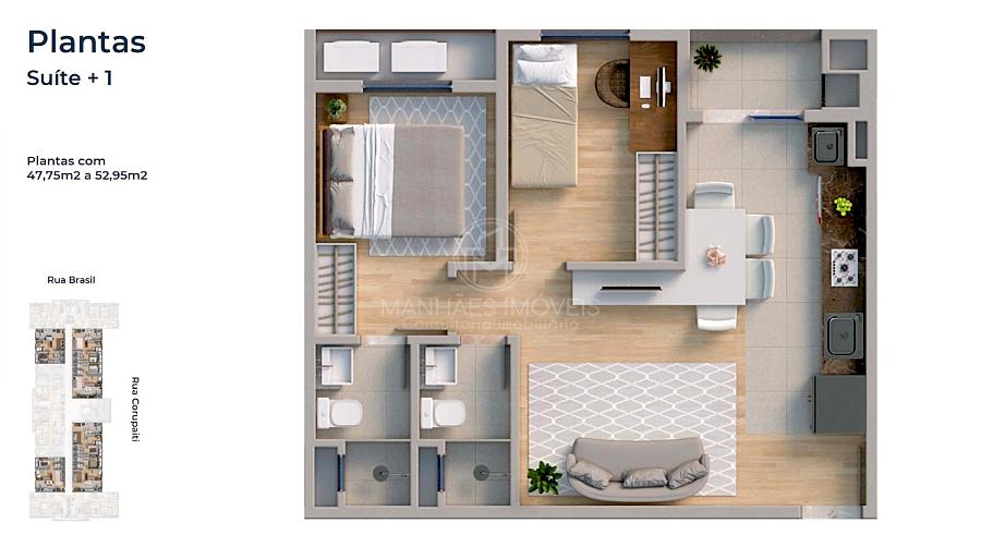 Planta humanizada do Apartamento Suíte + 1