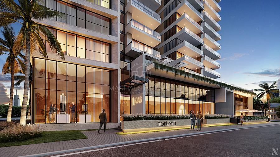 O Horizon by CAS foi projetado com foco na funcionalidade, no conforto térmico, no uso da luz natural e na interação dos espaços interiores com o meio exterior. As linhas arquitetônicas angulares potencializam a vista da orla e a privacidade entre as unidades habitacionais. Os variados acabamentos da fachada em tons terrosos evidenciam a estética natural e elegante do empreendimento.
