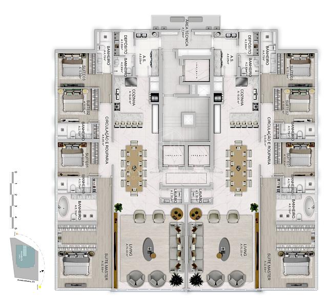10º ao 21º pav.: Planta humanizada do Pavimento Tipo 1