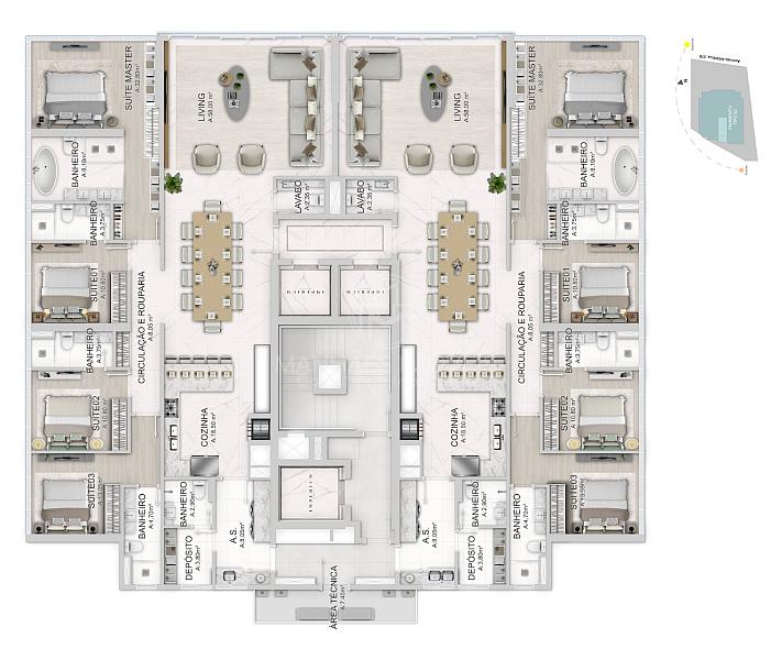 Com uma arquitetura que harmoniza a grandiosidade clássica à tecnologia de ponta, este empreendimento oferece uma experiência de vida rara. São mais de 1.800m² de lazer absoluto — incluindo Wine Bar e SPA de nível internacional — para redefinir o seu conceito de alto padrão.