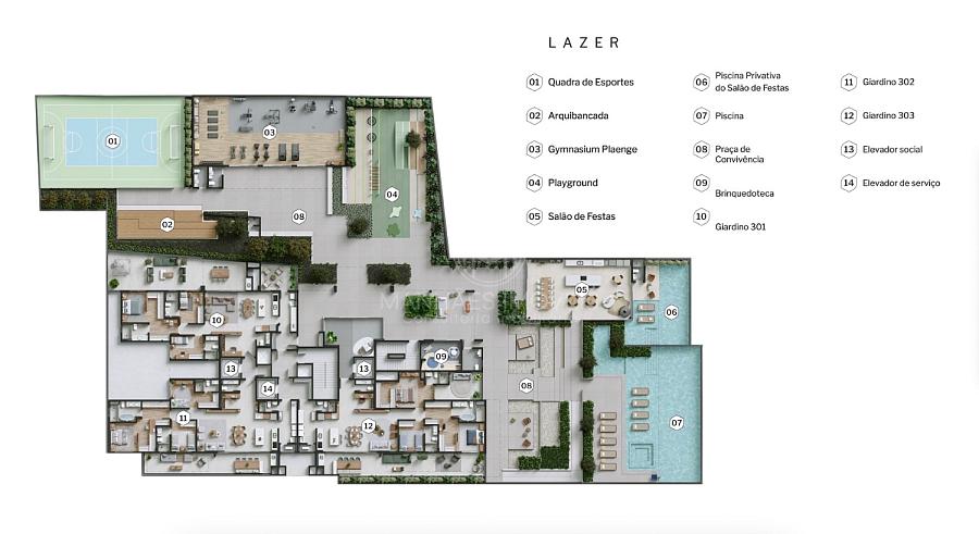 3º pav.: Praça com paisagismo exclusivo por Tellini Vontobel com curadoria de Jordi Castan