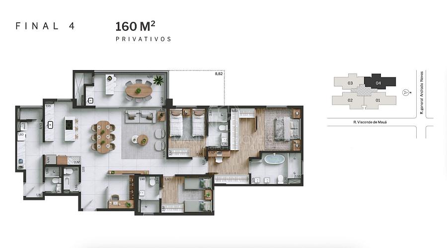 Planta humanizada do Apartamento Final 04