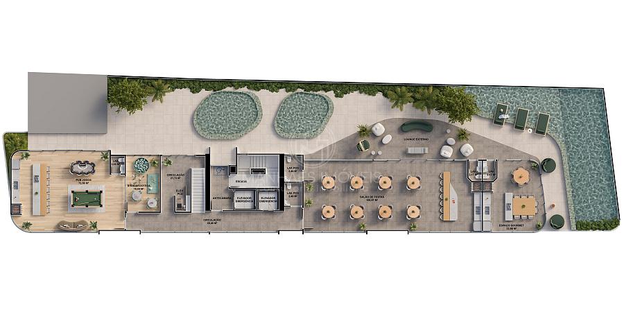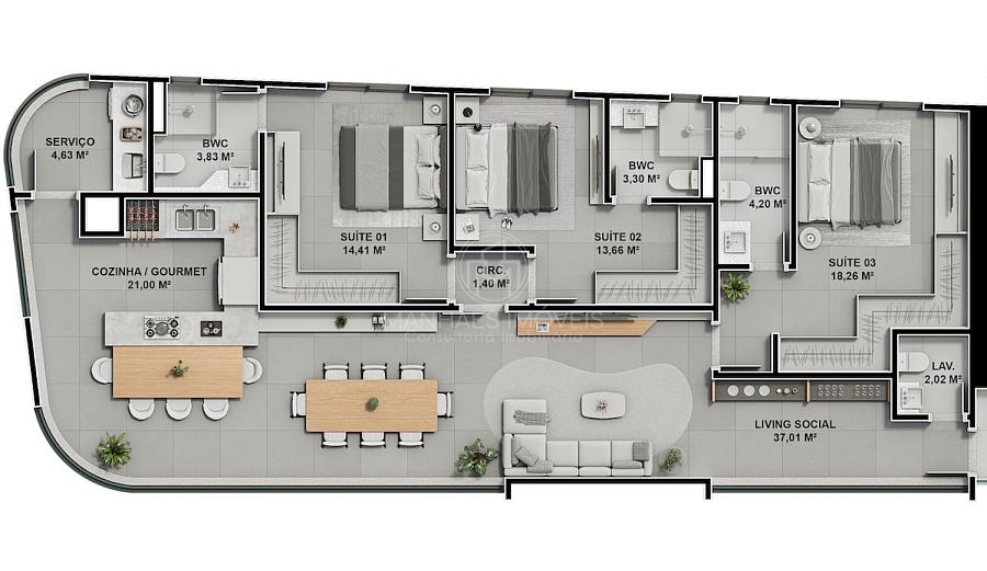 Planta humanizada do Apartamento Tipo 02 | 140m² priv.