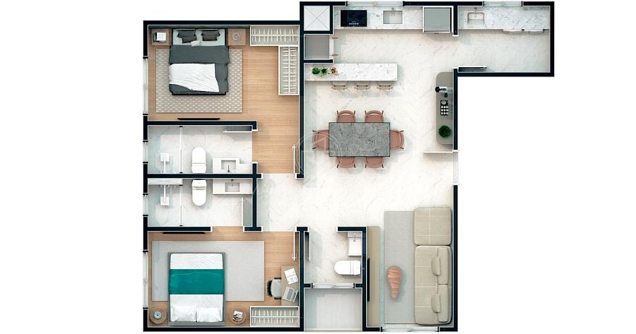 2 dormitórios (2 suítes)