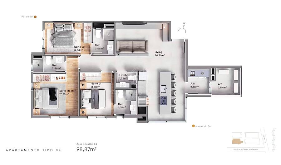 Planta humanizada do Apartamento Tipo 04