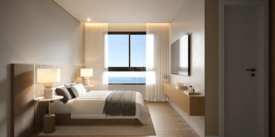 Apartamento Tipo 02: Living integrado com vista para o mar