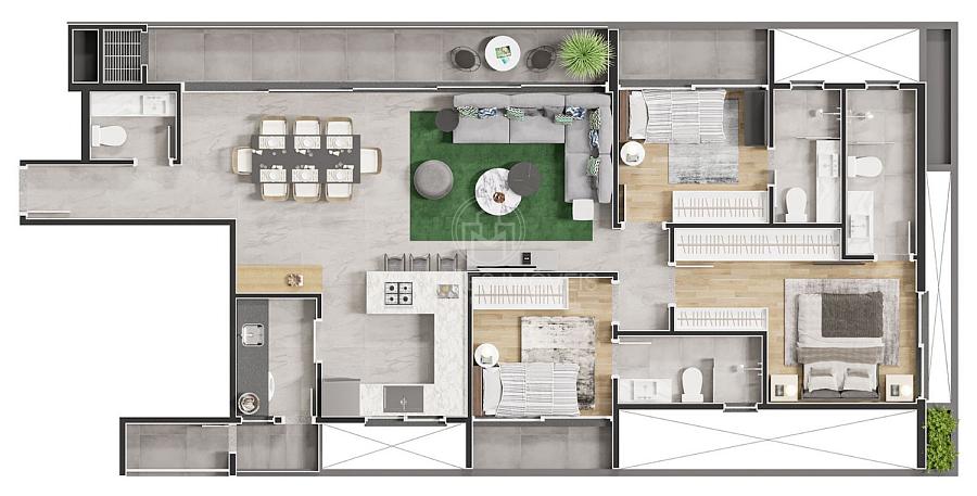 Planta humanizada do Apartamento Tipo 01 | 111m² priv.