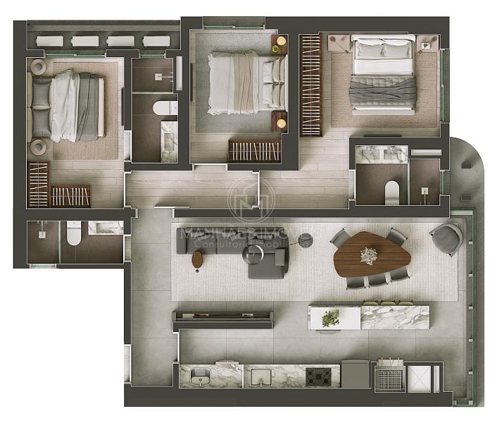 Planta humanizada do Apartamento Final 04 | 99,42m² priv.