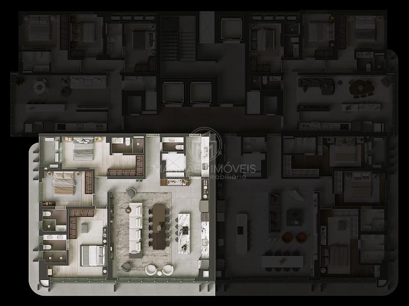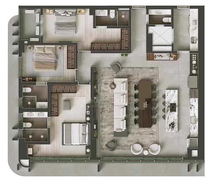 Planta humanizada do Apartamento Final 01 | 150,55m² priv.