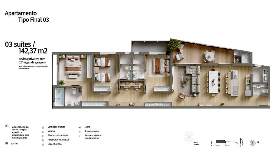 Planta humanizada do Apartamento Tipo - Final 03