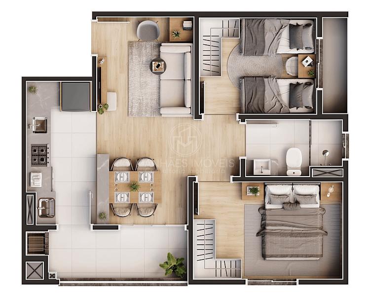 Planta humanizada do Apartamento Tipo 1 | 52m² priv.