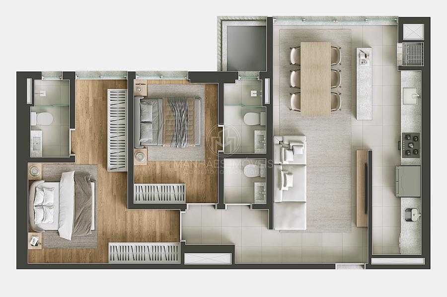 Planta humanizada do Apartamento Tipo | Final 04 - 81m² priv.
