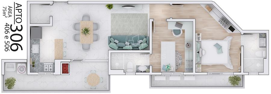 Planta humanizada do Apartamento Tipo | Final 06 - 75m² priv.