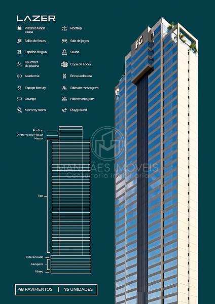 Exclusividade e Planta: Com 48 pavimentos e design contemporâneo, o projeto oferece privacidade absoluta com apenas 2 apartamentos por andar.
