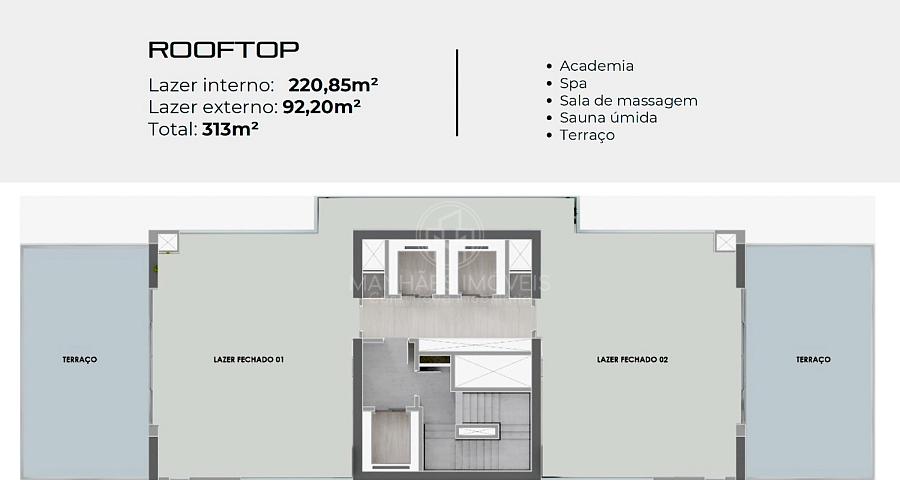 Implantação do Rooftop integrando academia e SPA à vista panorâmica