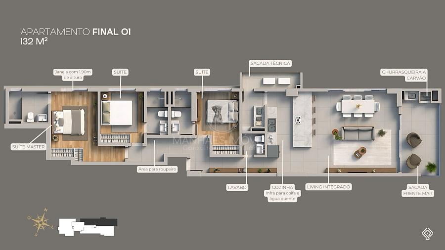 Planta humanizada do Apartamento Final 01