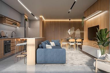 Apartamento com 2 Suítes (73m²): Living Integrado com Pé Direito de 3,12m