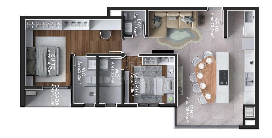Planta do Apartamento com 2 Suítes (73m²)