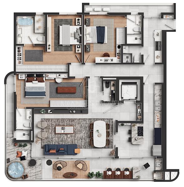 Planta humanizada do Apartamento Tipo 2 | 200m² priv.