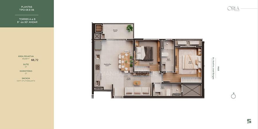 Planta humanizada dos Apartamentos Tipo 05 e 06