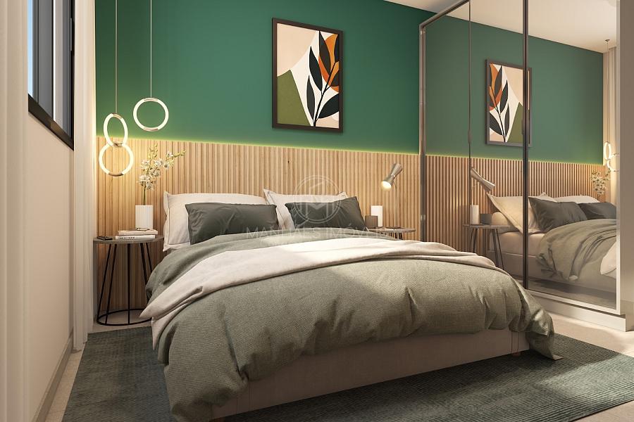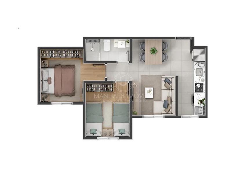 Plantas humanizada do Apartamento Tipo B | 42,99m² priv.