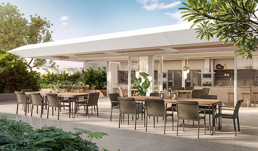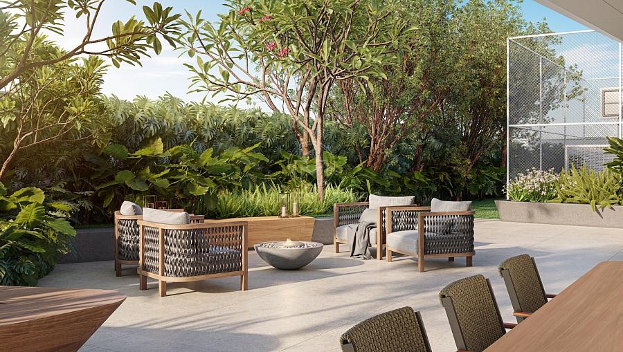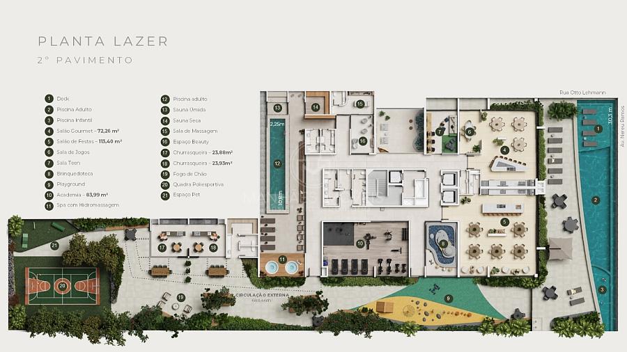 Implantação do 2º pavimento | Área de lazer com mobiliário da Saccaro, sonorização da Som Maior e automação da Piero Infinity Control