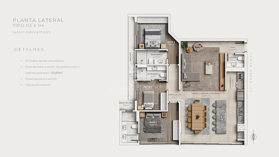 Planta humanizada dos Apartamentos Tipo 3 e 4