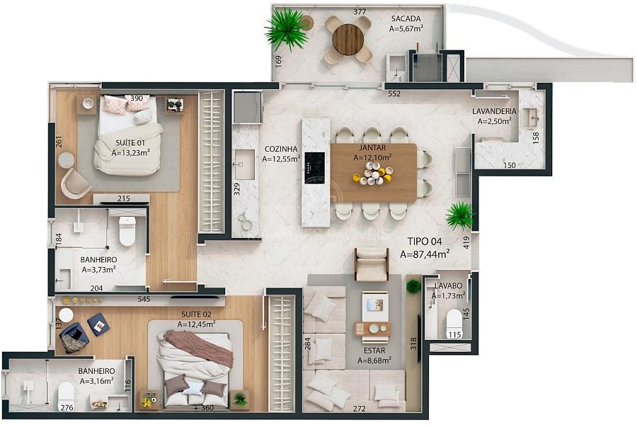 Imagens ilustrativas do Apartamento Tipo 04: Living