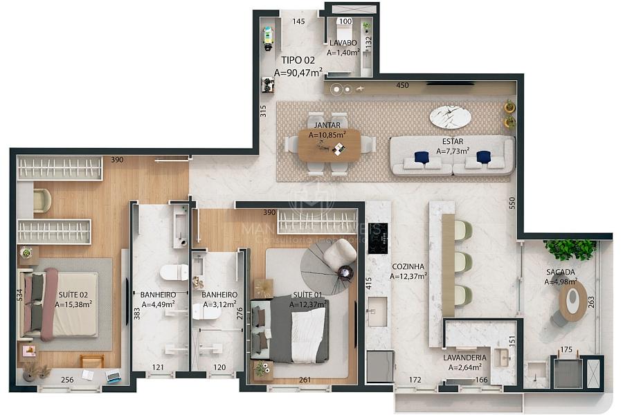 - Condições de pagamento flexíveis com correção pelo CUB/SC até a entrega das chaves