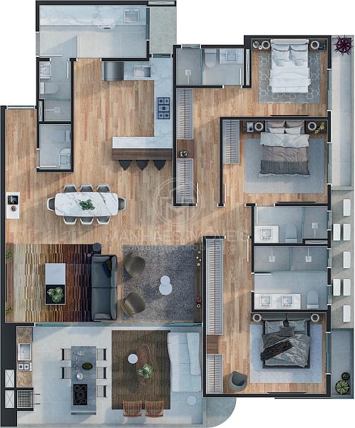 Planta humanizada do Apartamento Tipo | 172m² priv.