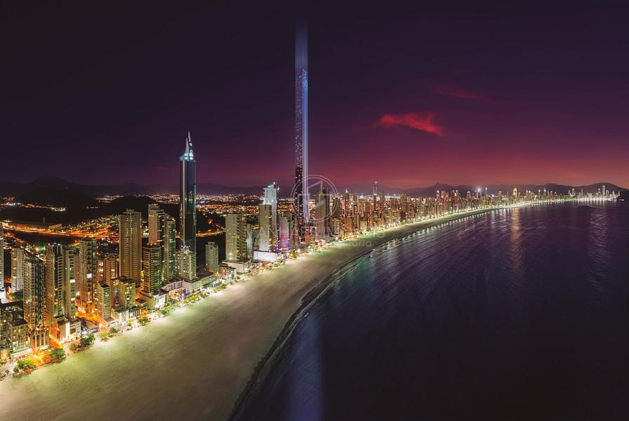 A imponência do Senna Tower com +500m de Altura Iluminando a Avenida Atlântica
