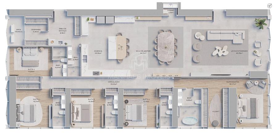 Planta humanizada do Apartamento de 300m² priv.