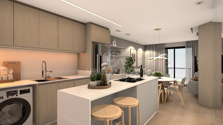 Apartamento de 2 Quartos (1 Suíte): Sala de Estar e Cozinha